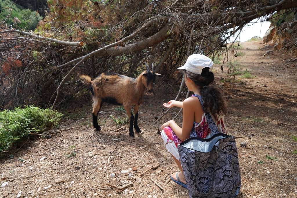 Goats also wander the hills. These are more likely to answer our calls. Some are timid, but others come right over to visit. As much as the kids like to play with the goats, they still refuse to eat the salty goat cheese that is popular in Albania.