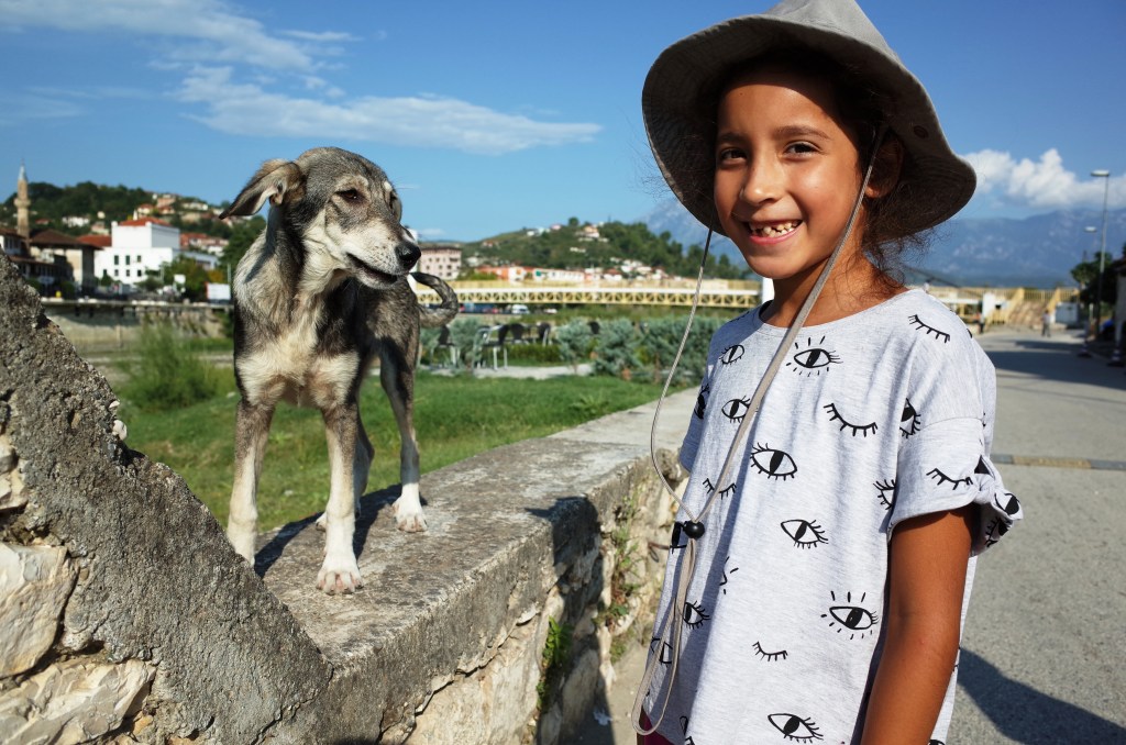 Everywhere my daughter goes, she makes friends. In Albania, these are mostly animal friends because there’s nothing she loves better than furry animals, and furry animals are everywhere in Albania.