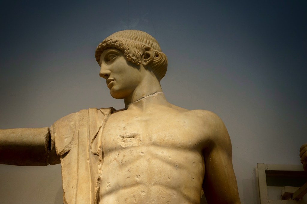 We noticed blackened hills surrounding the Olympic valley: some of the destruction of the many wildfires that raged through Greece over the summer. The town of Ancient Olympia was evacuated only a month or so before we arrived and the ancient ruins came under serious threat from the fires. It wouldn’t have been the first time that these temples were threatened.