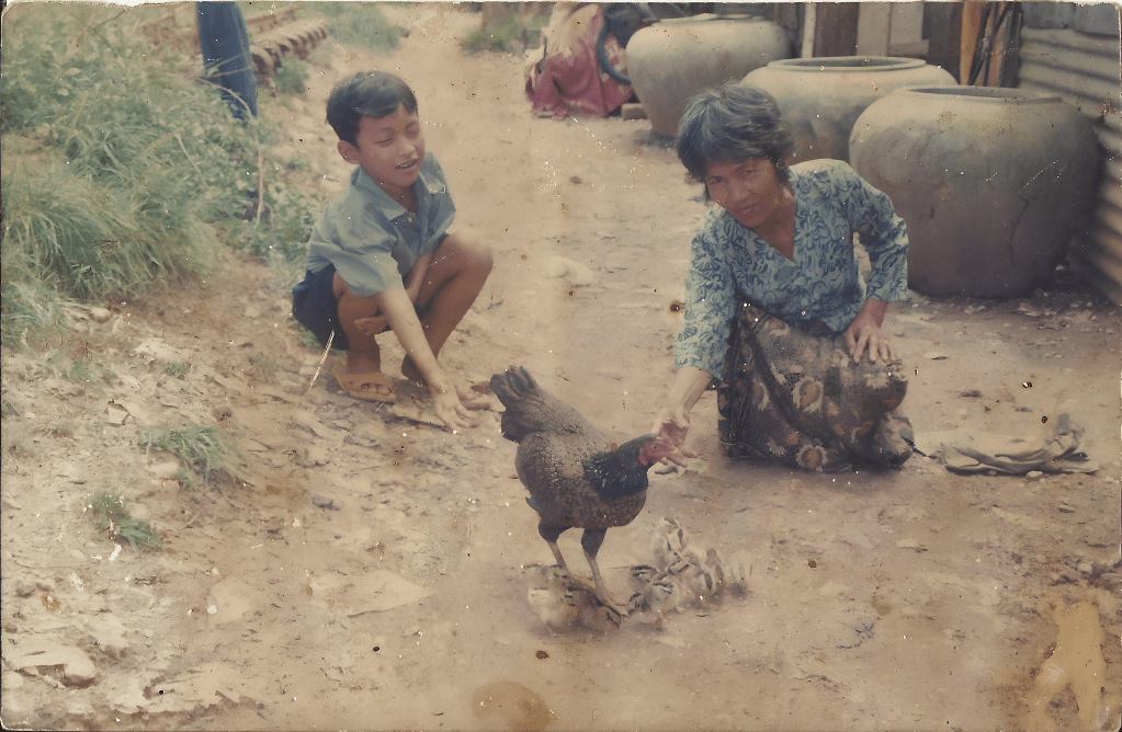 Phnom Penh was emptied of its population by the Khmer Rouge in 1975 and once they were ousted people slowly began to move back into the city and could claim land or an abandoned home for themselves. Tola’s family moved to Phnom Penh in the early 1980s and found this neighborhood in the center of the city to be quite appealing because they could build their own houses, raise chickens and grow vegetables and fruits. But in the 2000s in Cambodia, as the city slowly developed and land values increased, people began to be forcefully evicted from communities like this. Numerous slums around the city were burned down.
